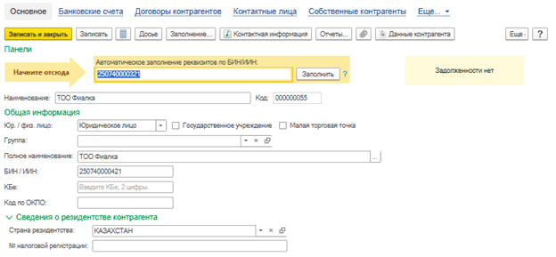и сведения о контрагенте автоматически загружаются в программу. Вы уже знакомы с этой функцией, правда?